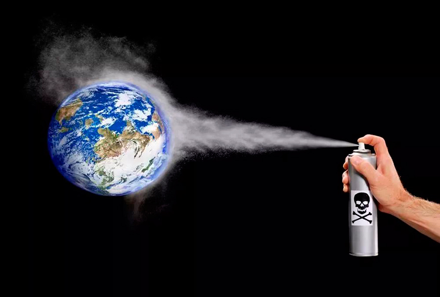 Utilização de CFC's (clorofluorcarboneto), que causa "buracos" na camada de Ozono.